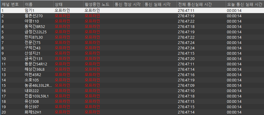 • 아래 그림과 같이 '스카다 통신 채널 요약 정보' 화면에 표시되는 통신 채널에 관련된 정보들을 읽어올 수 있습니다.