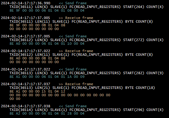 2. 패킷 수신 정지 기능이 실행되면 화면에 통신 내용이 갱신 되지 않습니다.