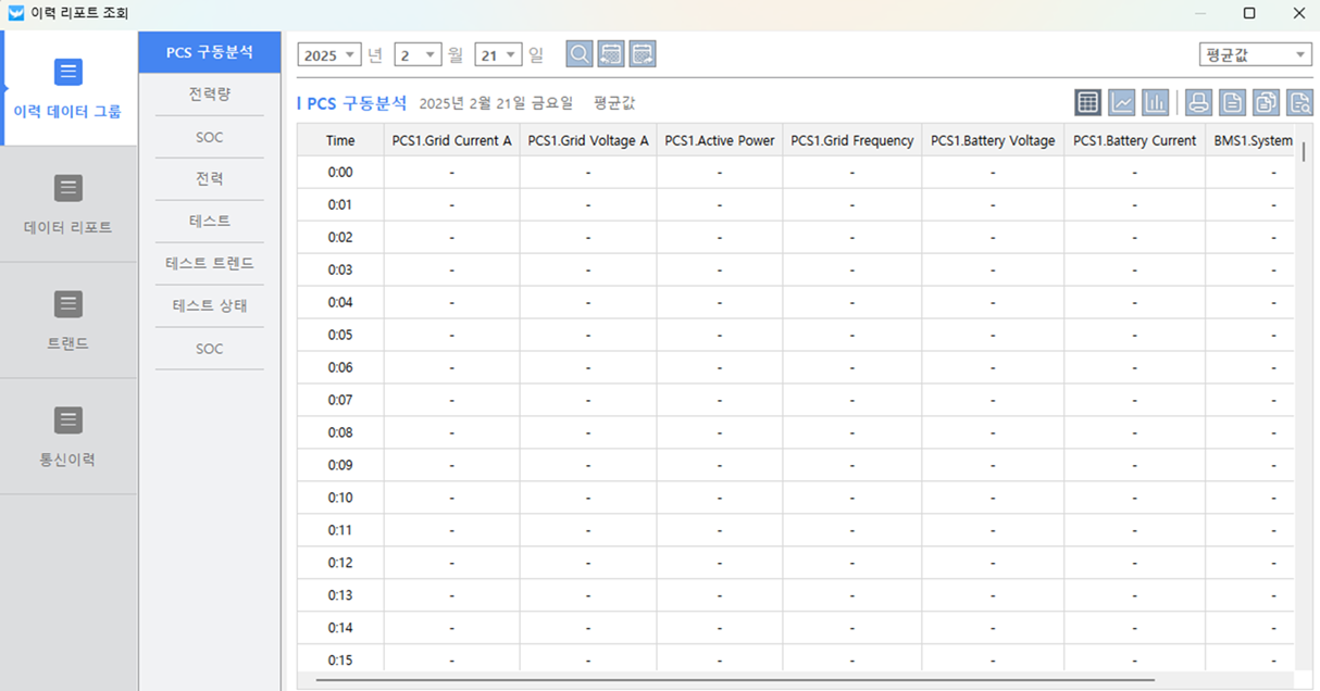 파워씬 HMI기능정보창 메뉴 이력 리포트 조회 이력 리포트 조회는 데이터익스플로러에 저장된 이력 데이터 그룹과 이력 데이터 상세 출력 그룹에서의 데이터 리포트, 트랜드 그룹, 통신 이력을 조회하여 그래프 혹은 테이블 형태로 볼 수 있는 기능을 제공합니다. 이력 데이터 그룹 데이터 리포트 트랜드 통신이력