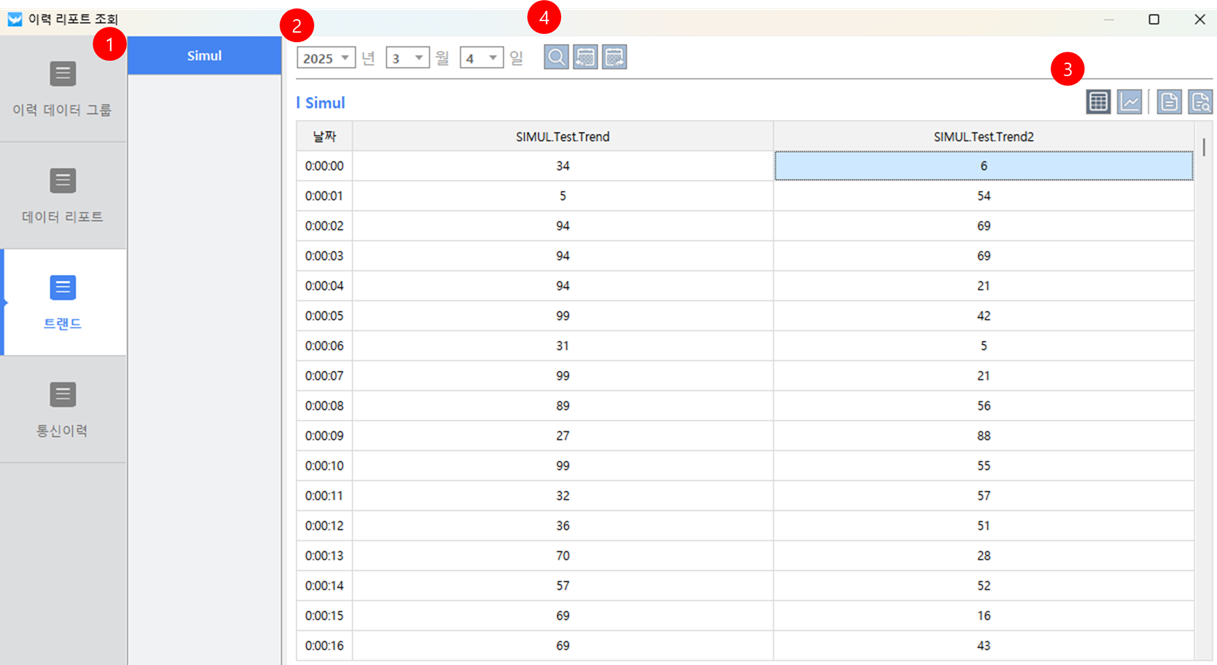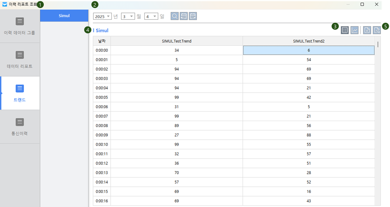 1. 이력 리포트 조회창에서 보고 싶은 트랜드를 선택합니다.