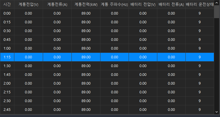 테이블 행에 표시 간격을 지정합니다. 기본적으로 데이터 저장 간격이 15분 데이터인 경우 15분 간격으로 표에 표시 됩니다. 표시 간격을 설정하면 설정한 간격으로 데이터가 표시 됩니다. 예를 들어 60으로 설정시 1시간 단위로 데이터가 표시 됩니다.