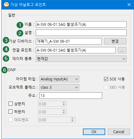 가상 아날로그 포인트 설정