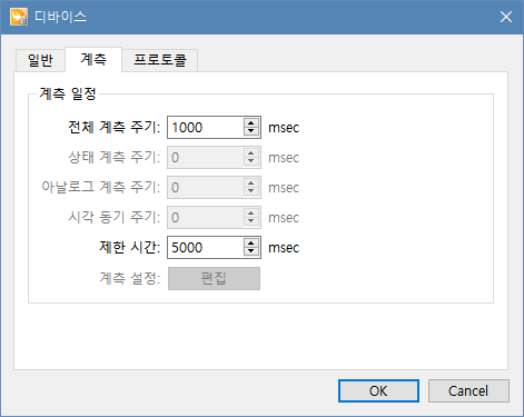 계측 탭에 대한 항목설명은 다음과 같습니다.