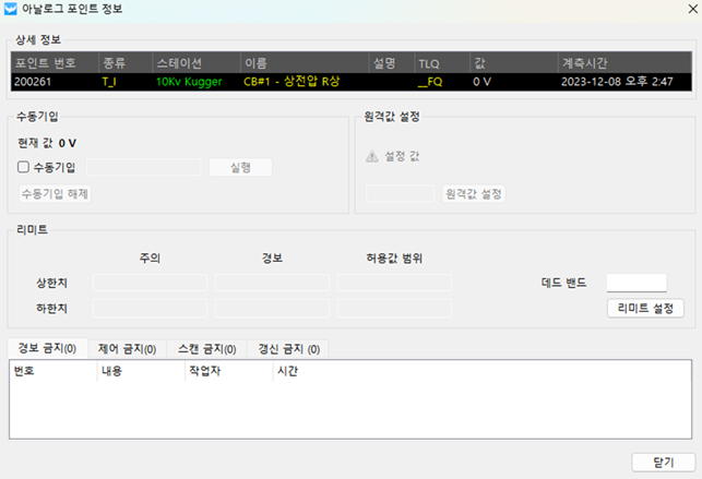 - 리미트 설정 - 아날로그 포인트인 경우 리미트 값을 설정합니다.
