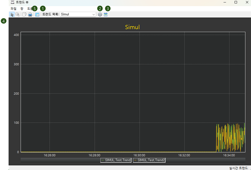 실시간 트랜드 및 이력 트랜드를 그래프 형태로 표시합니다.