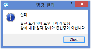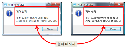 제어 확인창의 사용자 확인 후 제어 실패 예입니다.